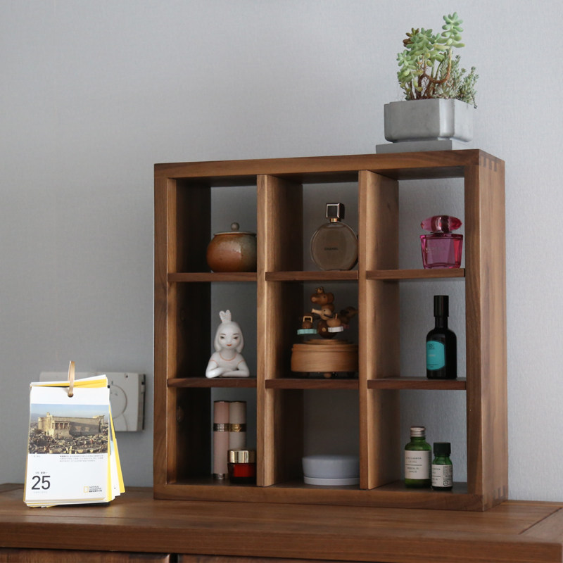 黑胡桃实木格架 自由组合柜格子柜桌面小书柜 办公桌上书架置物架