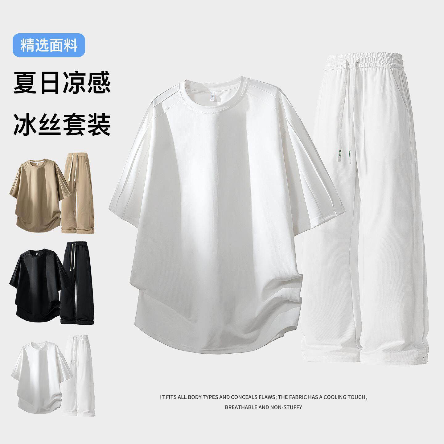 潮流宽松痞帅气短袖 2026夏季 套装 男士 休闲运动潮牌穿搭配 t恤长裤