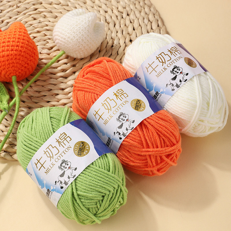 4股精梳牛奶棉毛线团线球手工钩针编织diy玩偶材料包宝宝花束围巾
