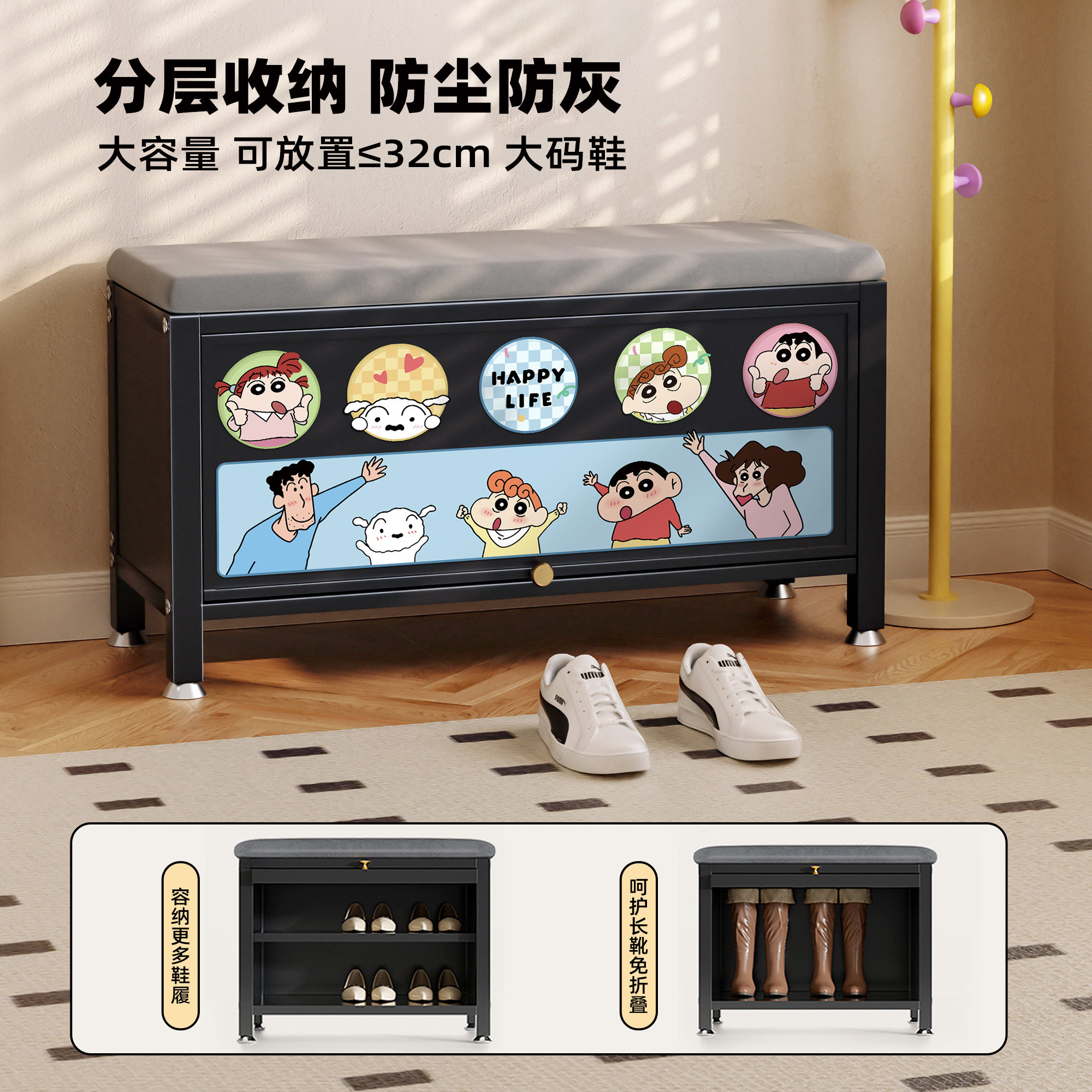 为您提供商品蜡笔小新换鞋 一体靠墙收纳凳钢制鞋 柜穿鞋 凳子 凳家用门口2025新款的详细介绍,