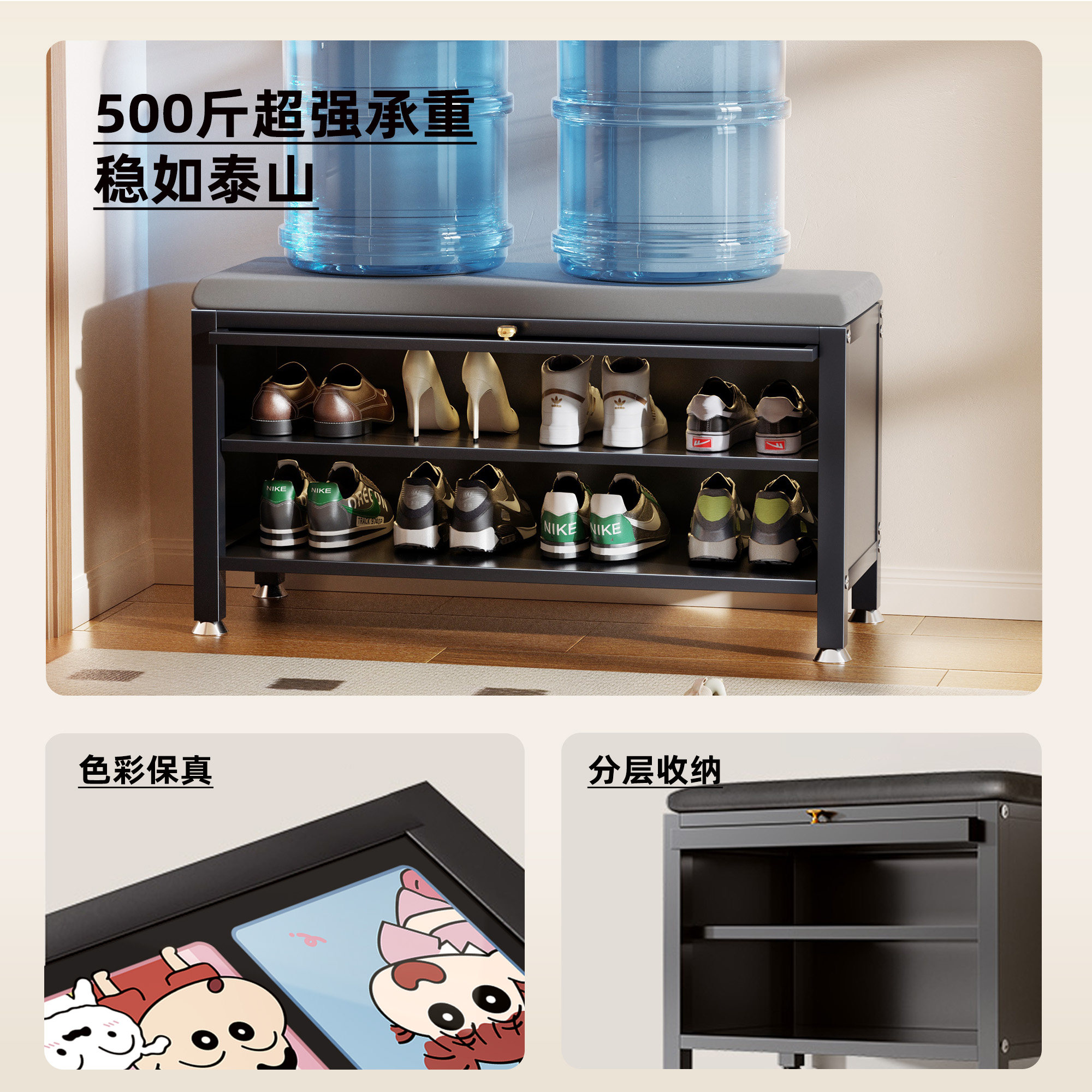 蜡笔小新换鞋 一体靠墙收纳凳钢制鞋 柜穿鞋 凳子 凳家用门口2025新款由