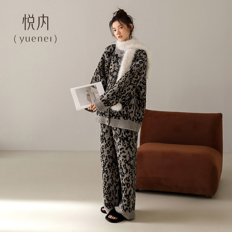 为您提供商品悦内半边绒睡衣女秋冬款 珊瑚绒加厚家居服保暖冬天豹纹可外穿 冬季的详细介绍,
