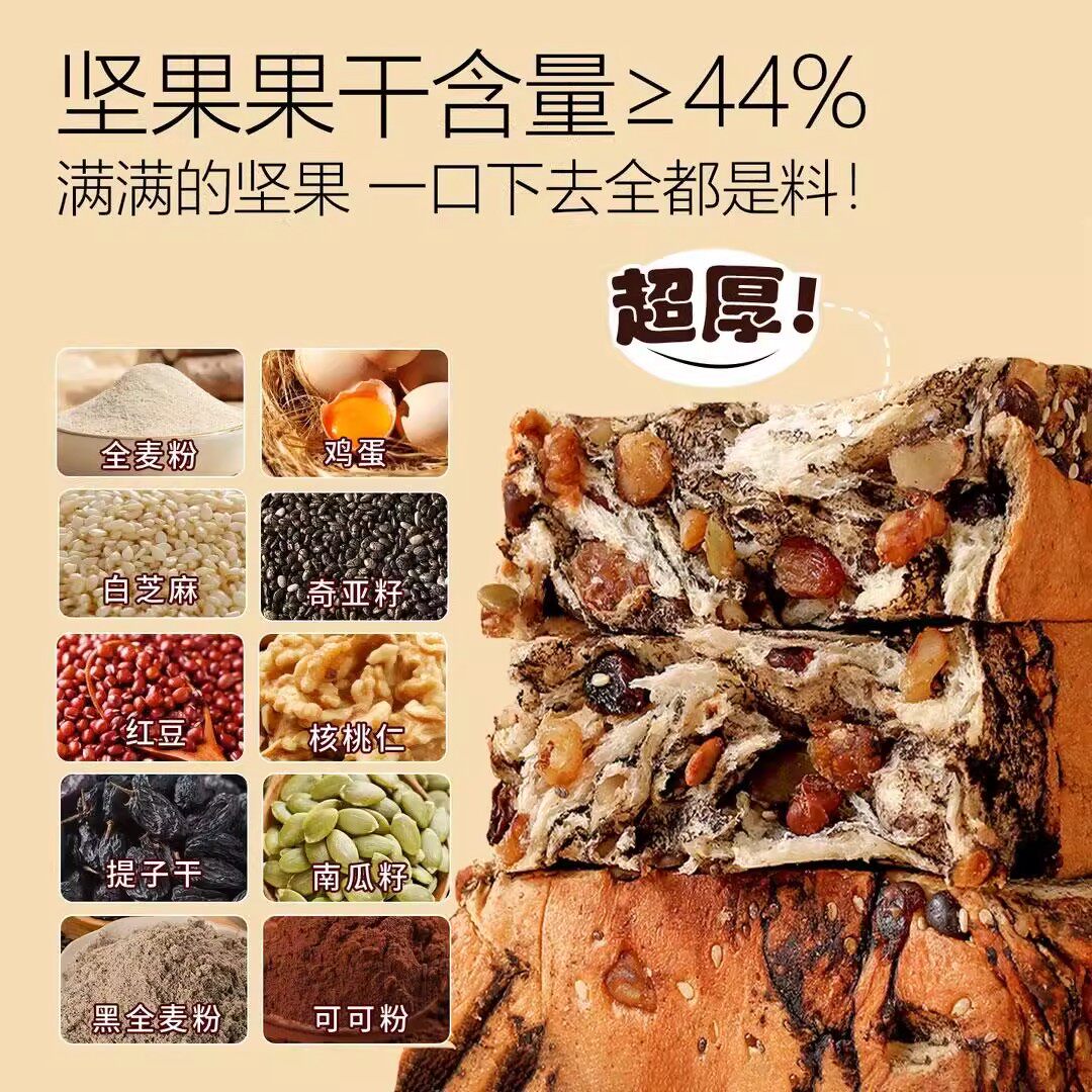 全麦坚果厚切吐司手撕面包饱腹代餐自律期速食零食整箱早餐由