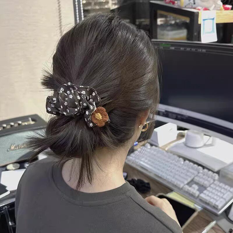 发量少头绳马尾丸子头发绳 ins小众韩系布艺咖色碎花大肠发圈小版