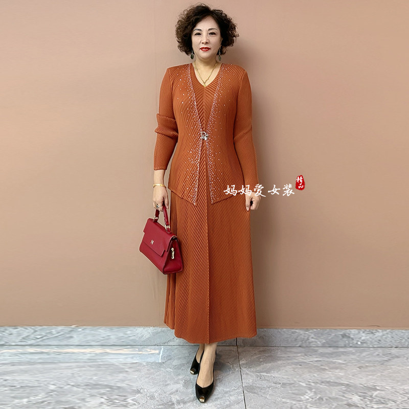 为您提供商品女士褶皱连衣裙高档洋气弹力中老年妈妈气质假两件长裙子 三宅时尚的详细介绍,