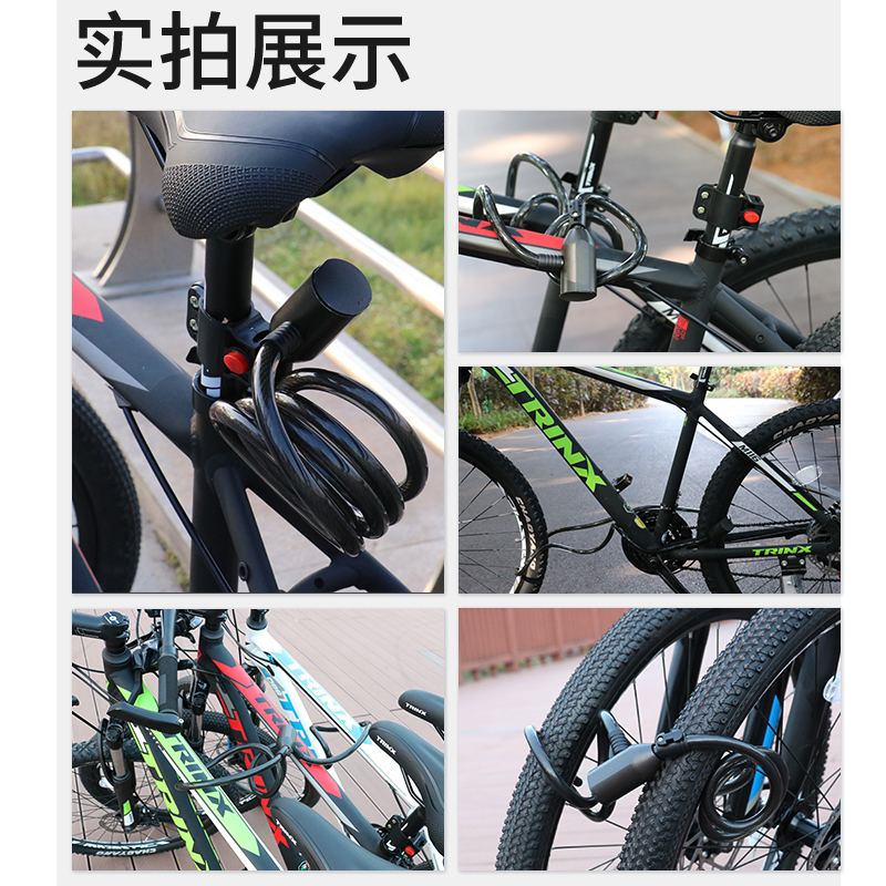 自行车密码 山地车链条电动锁钢缆碟刹锁通用 锁抗剪防盗便携式