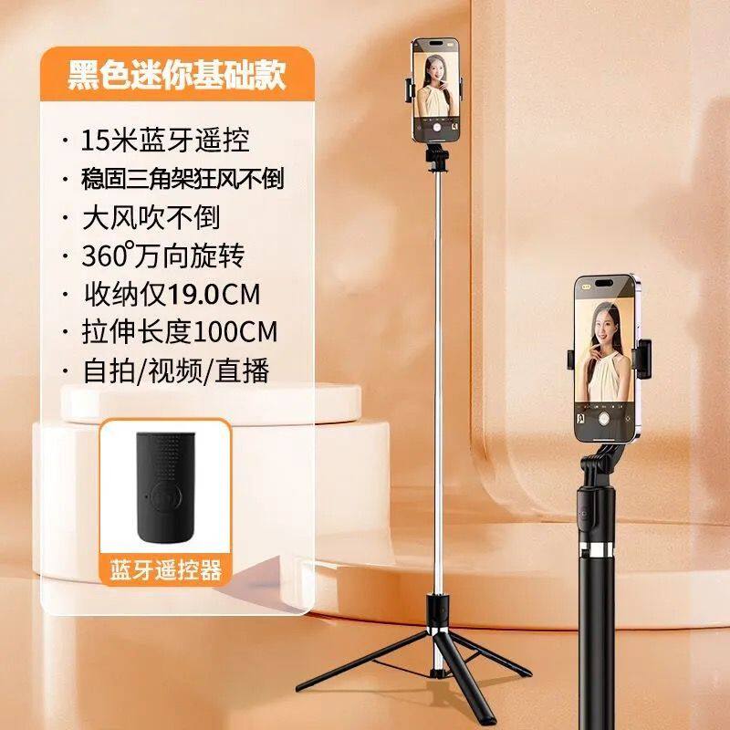 手机支架落地三脚架通用旅游便携迷你小型360度旋转直播自拍神器适用华为苹果小米通用多功能 自拍杆2026新款