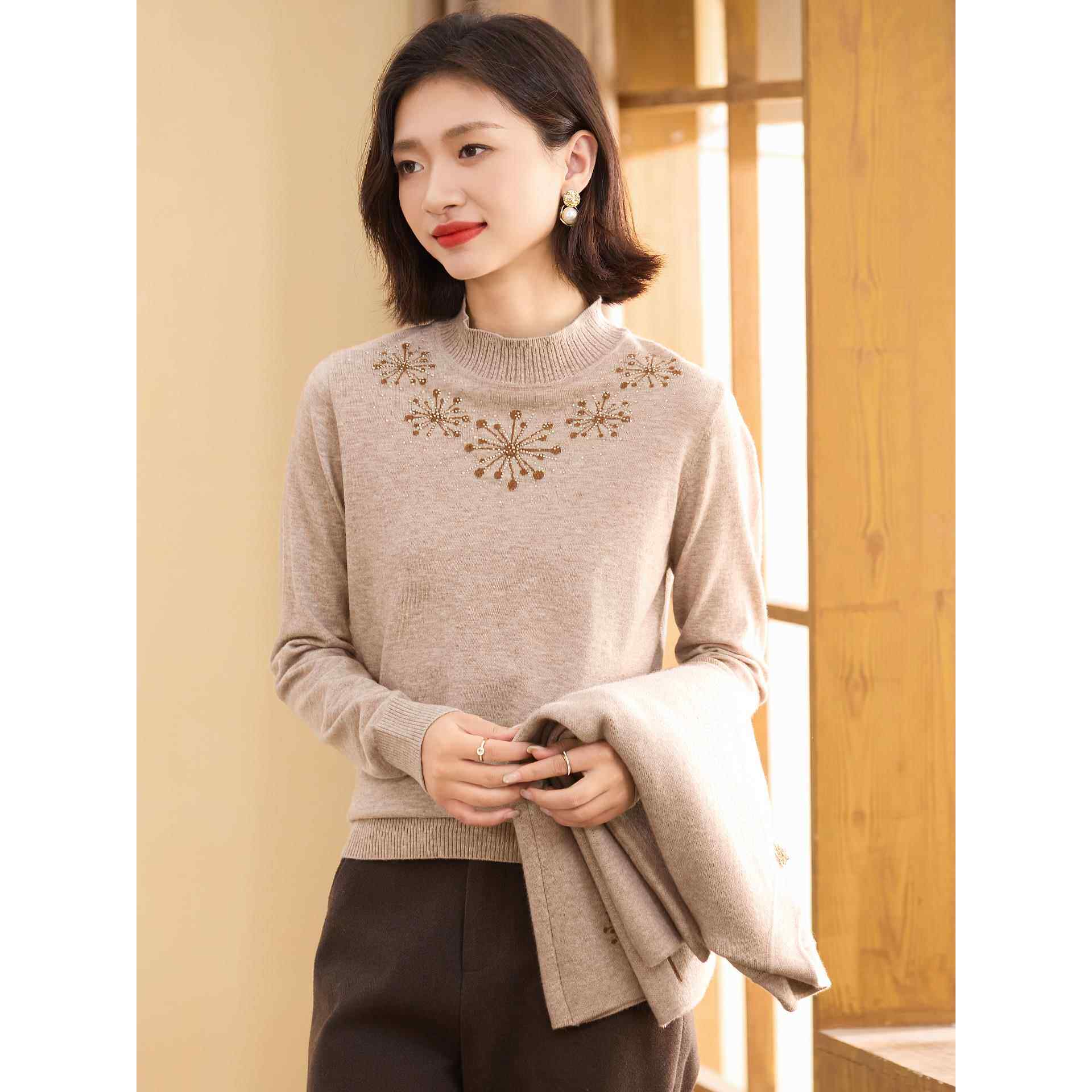 春秋翻领打底衫 2026新款 碎花针织衫 上衣中老年女装 薄毛衣 妈妈春装