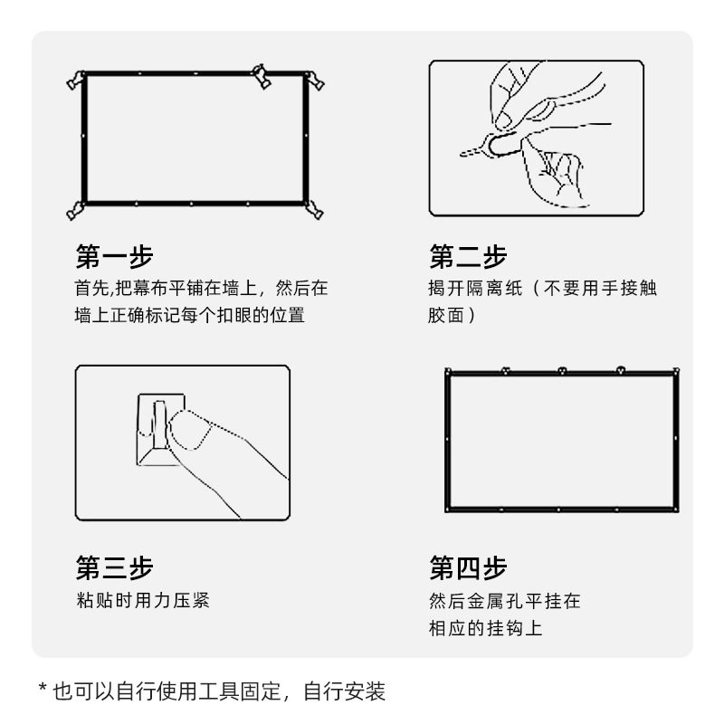 煎果投影幕布壁挂幕挂钩免打孔家用高清投影布84寸100寸移动便携贴墙卧室客厅投影仪屏幕布投影办公简易幕布