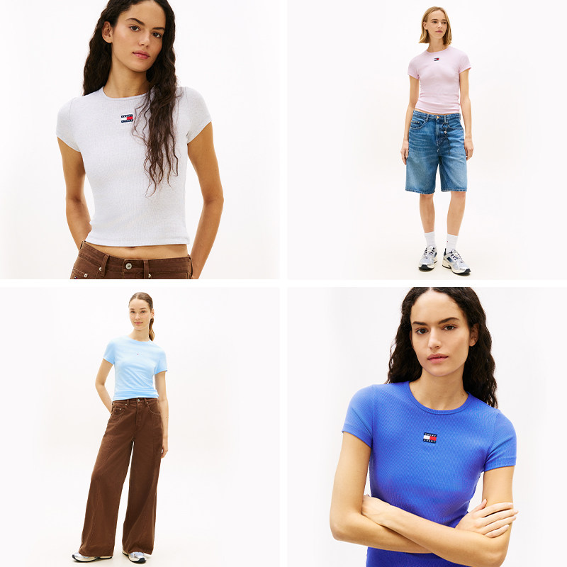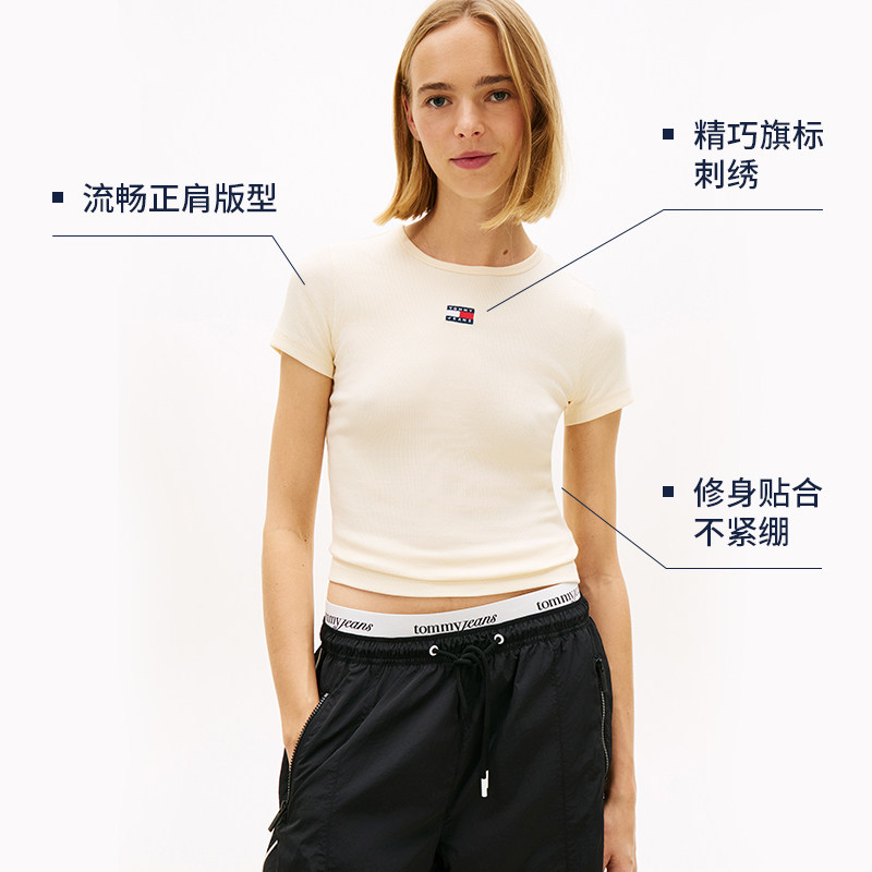 辣妹罗纹修身 坑条肌理 Tommy26春夏女装 T恤上衣 正肩重磅短袖