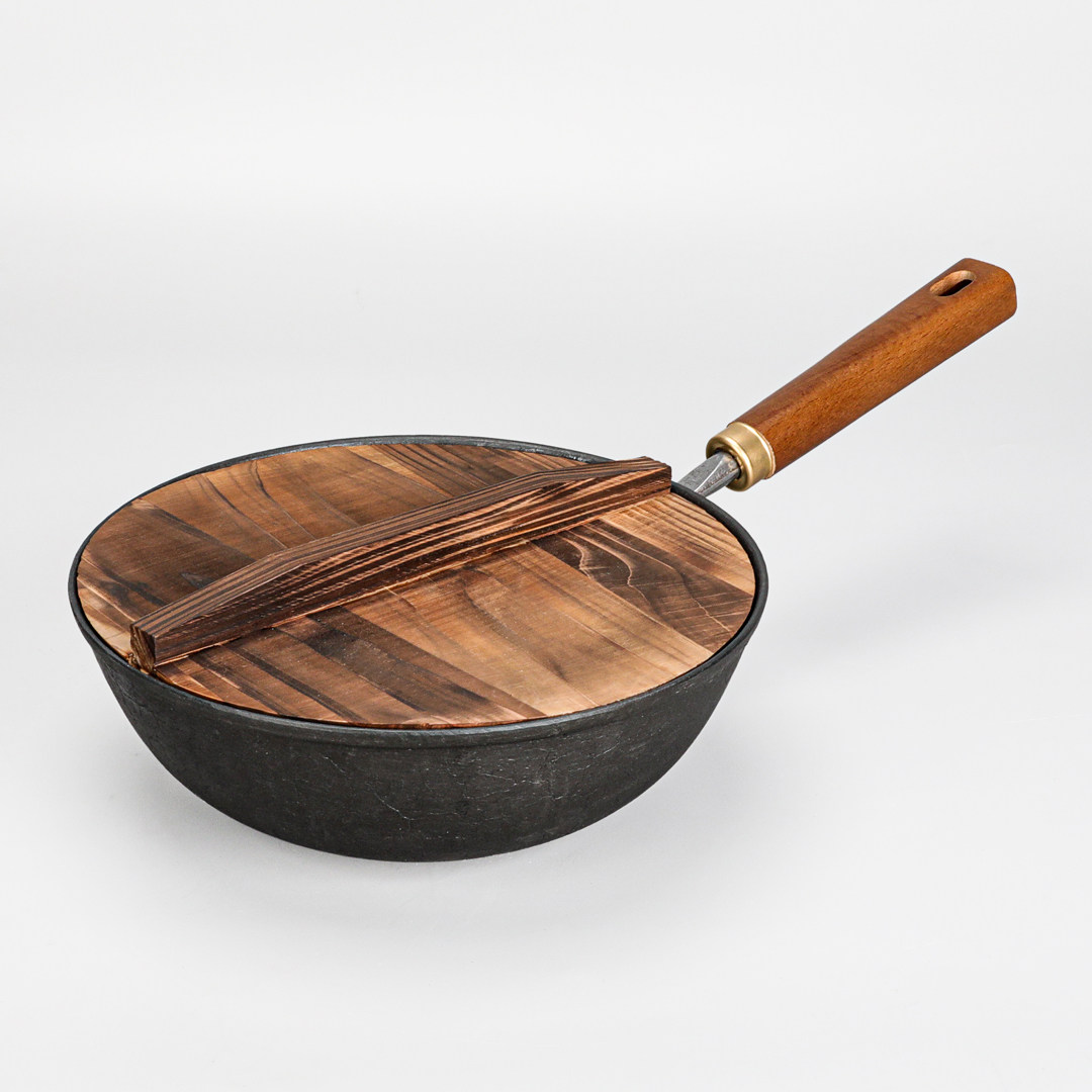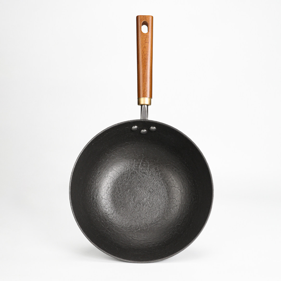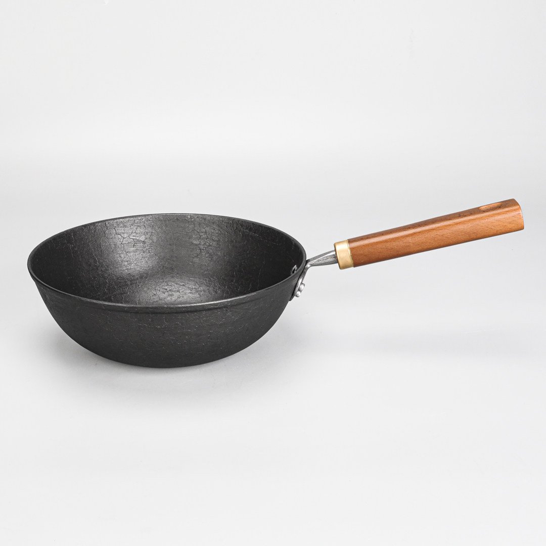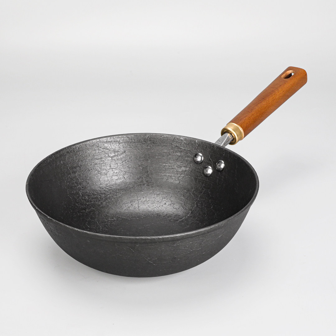 梁氏父子古法手工龟纹铸铁小炒锅无涂层铁锅生铁锅家用不易粘锅