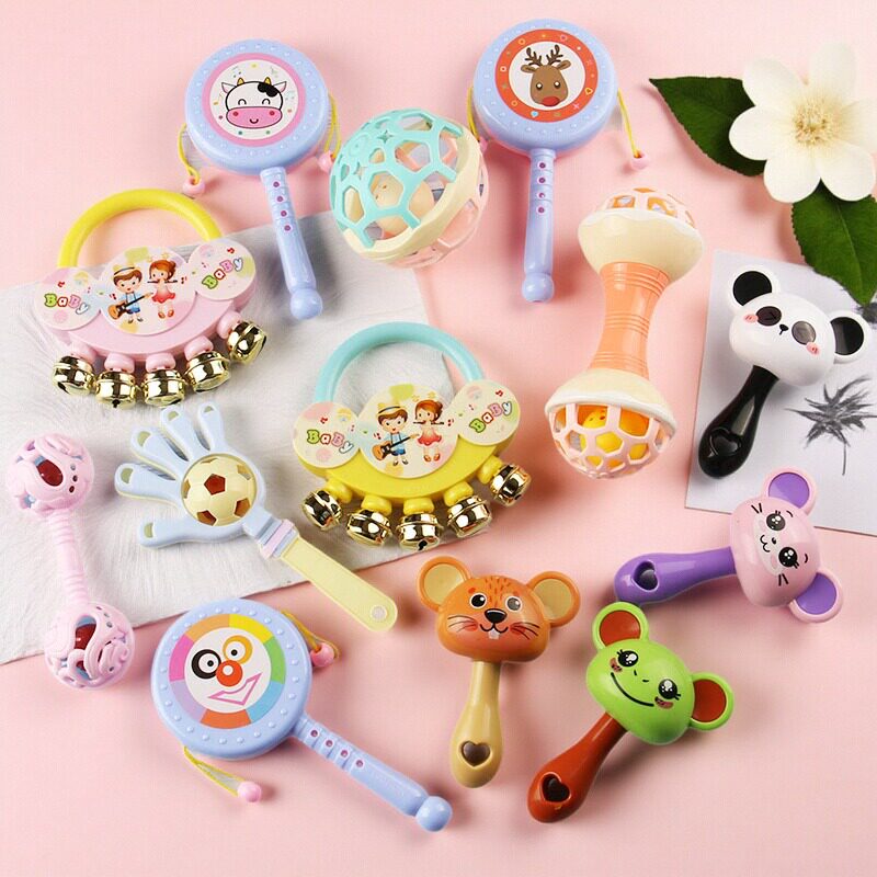 婴儿早教手摇铃沙锤抓握训练0一1岁新生儿3两2个月6宝宝益智玩具