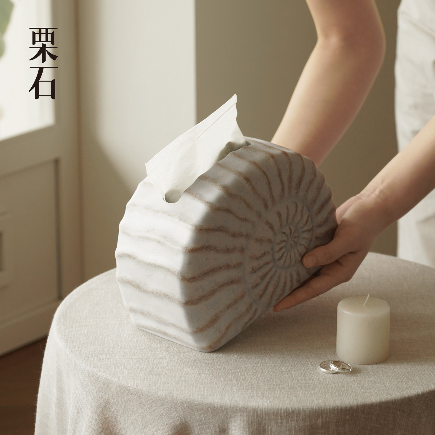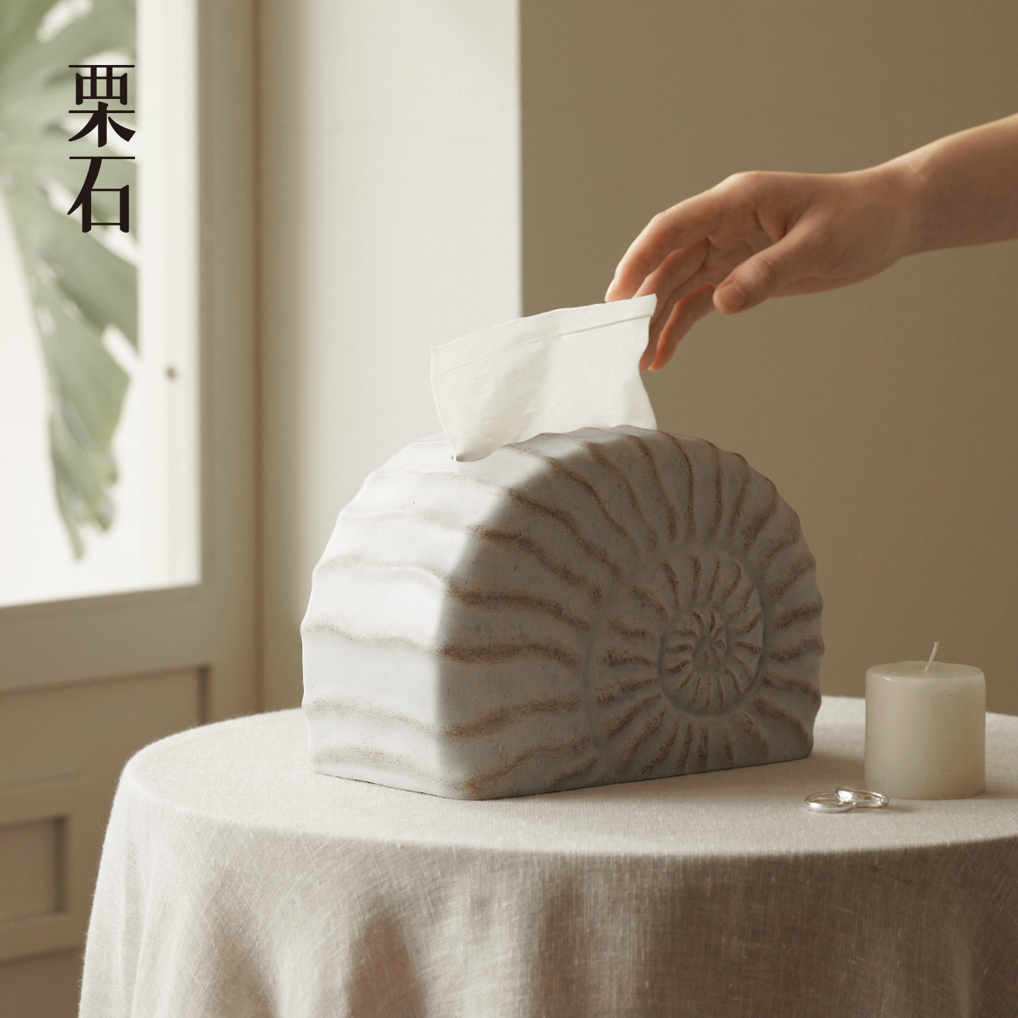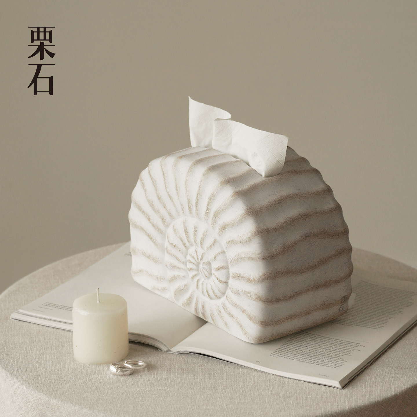 栗石侘寂风创意海螺纸巾盒摆件轻奢高级感家用餐桌客厅卧室抽纸盒