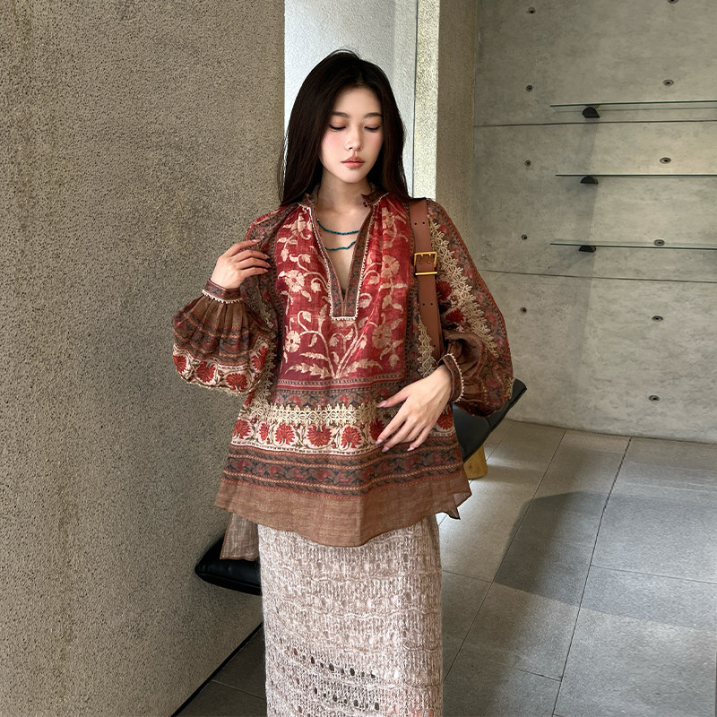 为您提供商品EAST THE INTO 上衣 印花苎麻编织衬衫 宽松落肩长袖 hug的详细介绍,