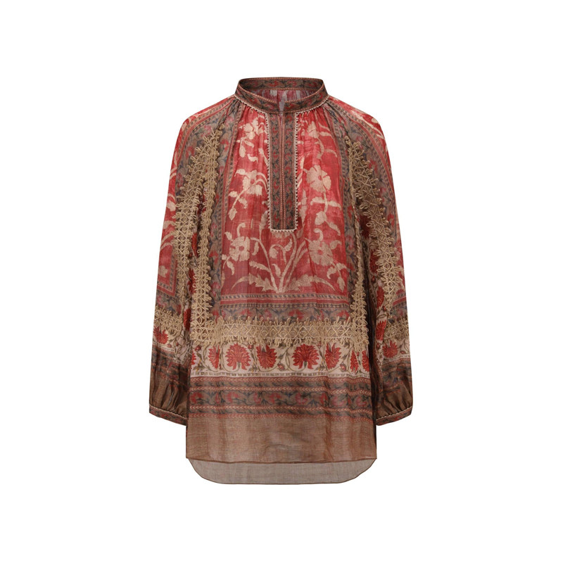 EAST THE INTO 上衣 印花苎麻编织衬衫 宽松落肩长袖 hug