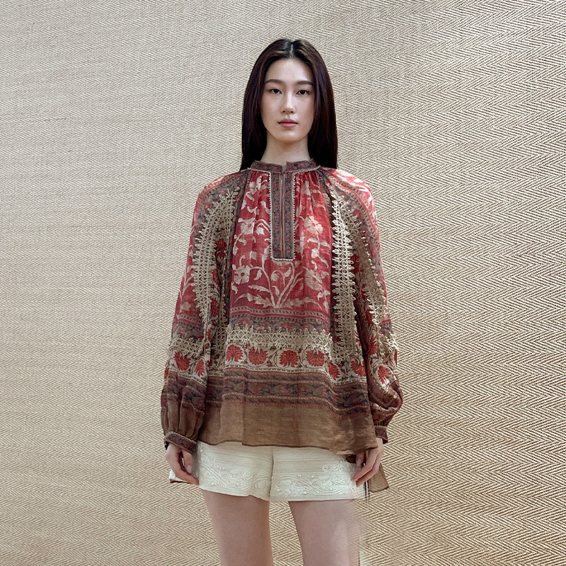 EAST THE INTO 上衣 印花苎麻编织衬衫 宽松落肩长袖 hug由