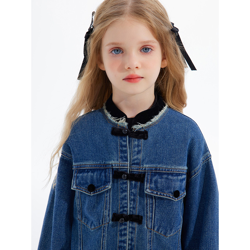 儿童衣服秋冬中大童牛仔上衣外套童装 女童外套2025新款 植木新中式