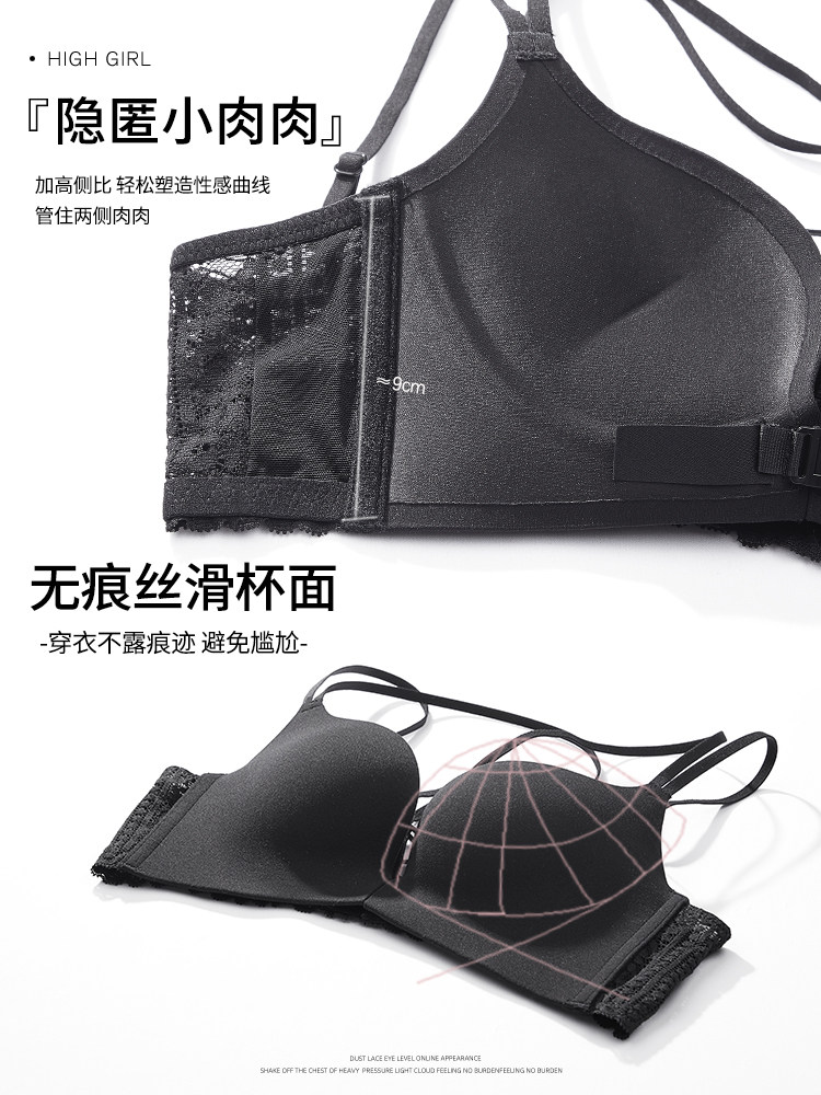 专柜性感美背少女内衣无钢圈聚拢小胸调整型上托薄款 前扣文胸套装由