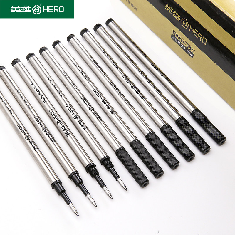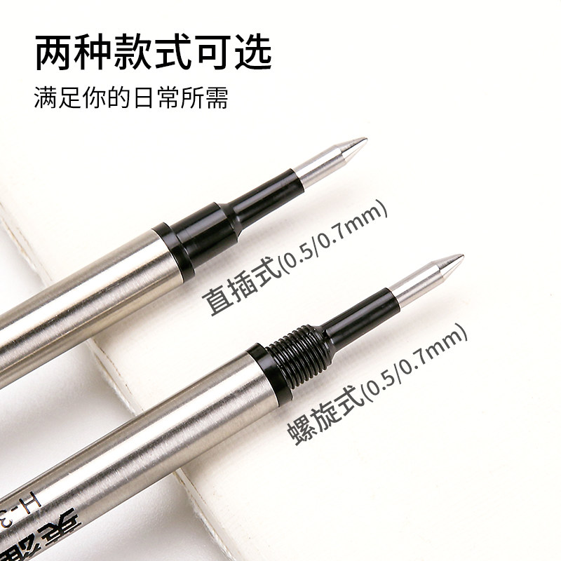英雄宝珠笔芯签字笔替芯直插式 0.5mm黑水笔芯走珠笔芯0.7mm黑色中性笔替芯 螺旋式