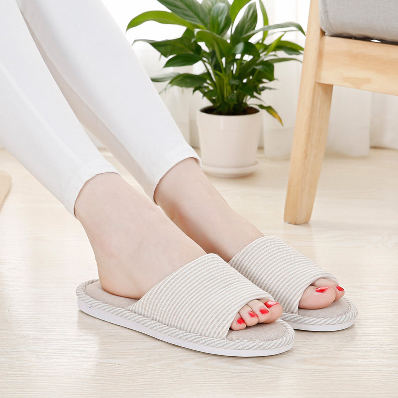 吸汗透气亚麻厚底凉拖鞋 女士外穿凉鞋 居家布拖鞋 加厚增高底
