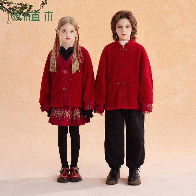 装 中大童红色年服外套儿童棉袄 男童女童棉服2025新款 植木童装
