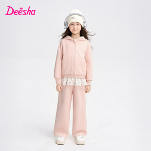 新款 笛莎童装 女童套装 春季 两件套洋气 儿童女孩宝宝卫衣外套阔腿裤