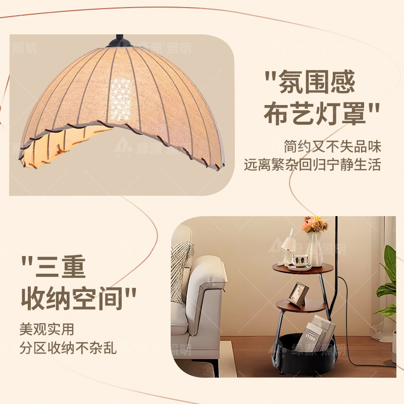 中古风落地灯客厅沙发旁2025新款 饰氛围灯 置物架一体卧室床头柜装