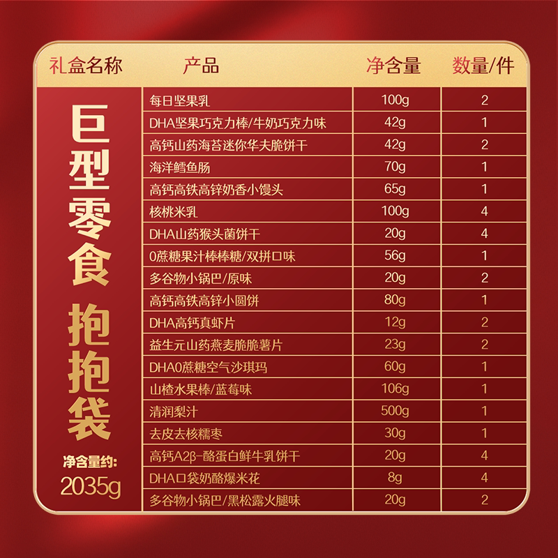 为您提供商品儿童零食38件米饼溶豆鱼肠糖果宝宝礼包 小鹿蓝蓝巨型零食抱抱袋的详细介绍,