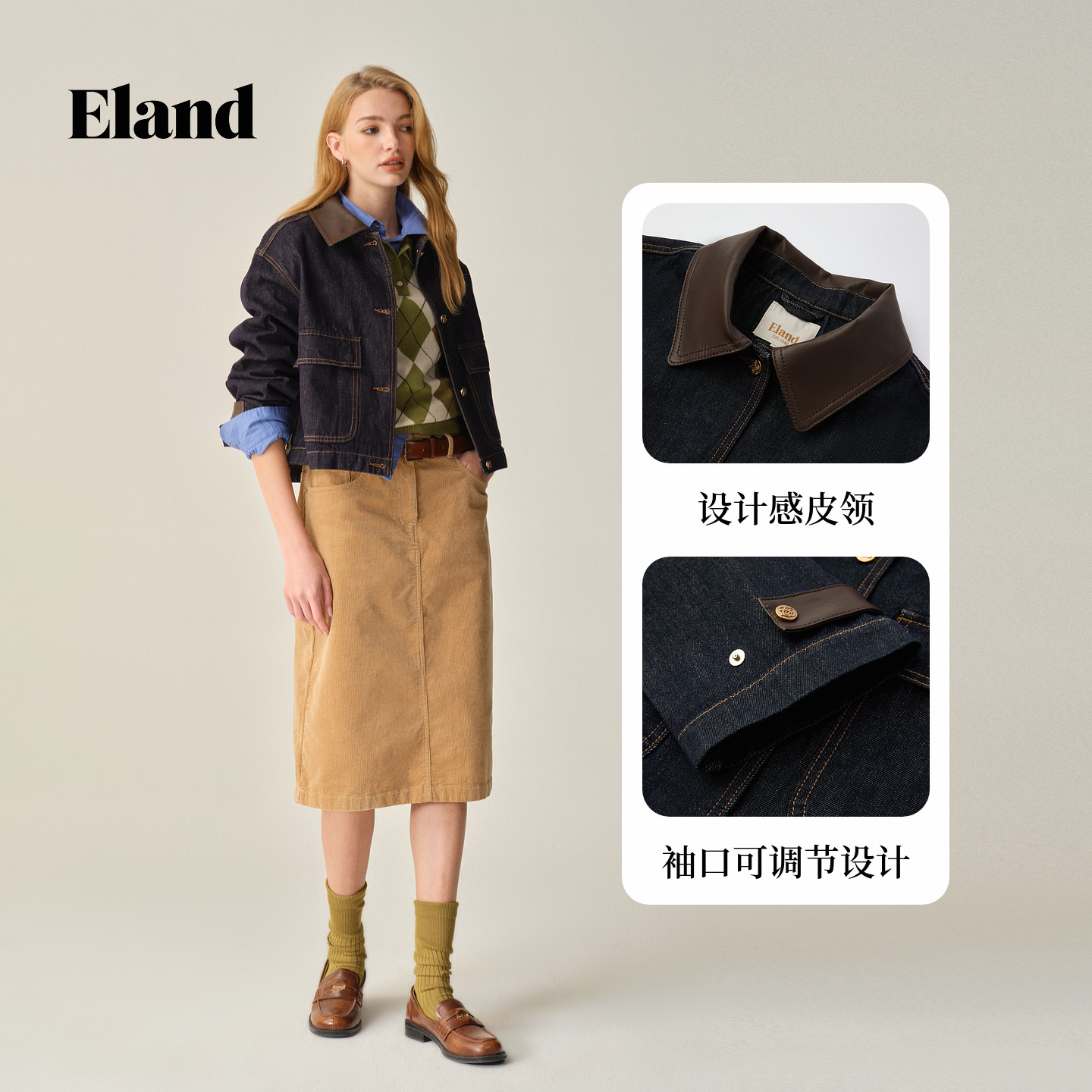 为您提供商品通勤牛仔女装 活性染牛仔 Eland衣恋短外套长袖 新款 冬季的详细介绍,