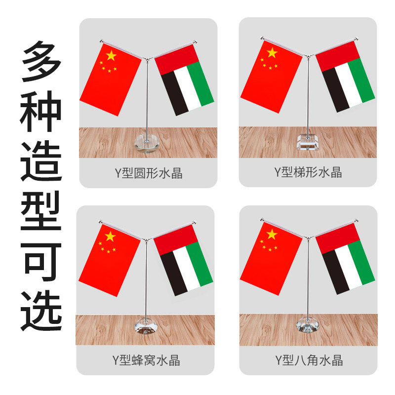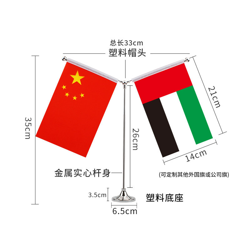 为您提供商品饰办公室桌面摆件小红旗旗架旗座 中国阿联酋国旗摆件谈判签字签约旗迪拜双杆Y型金色会议室办公桌旗杆台旗装的详细介绍,