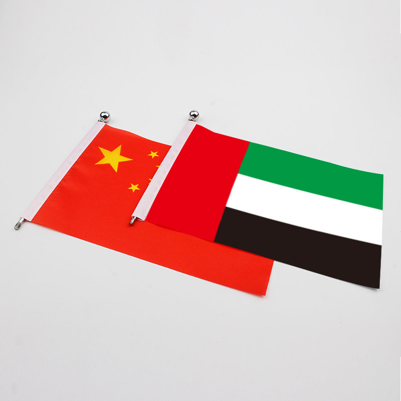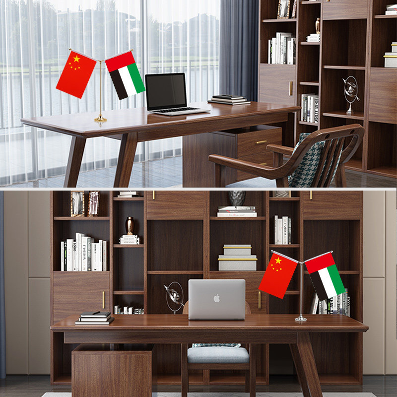 饰办公室桌面摆件小红旗旗架旗座 中国阿联酋国旗摆件谈判签字签约旗迪拜双杆Y型金色会议室办公桌旗杆台旗装