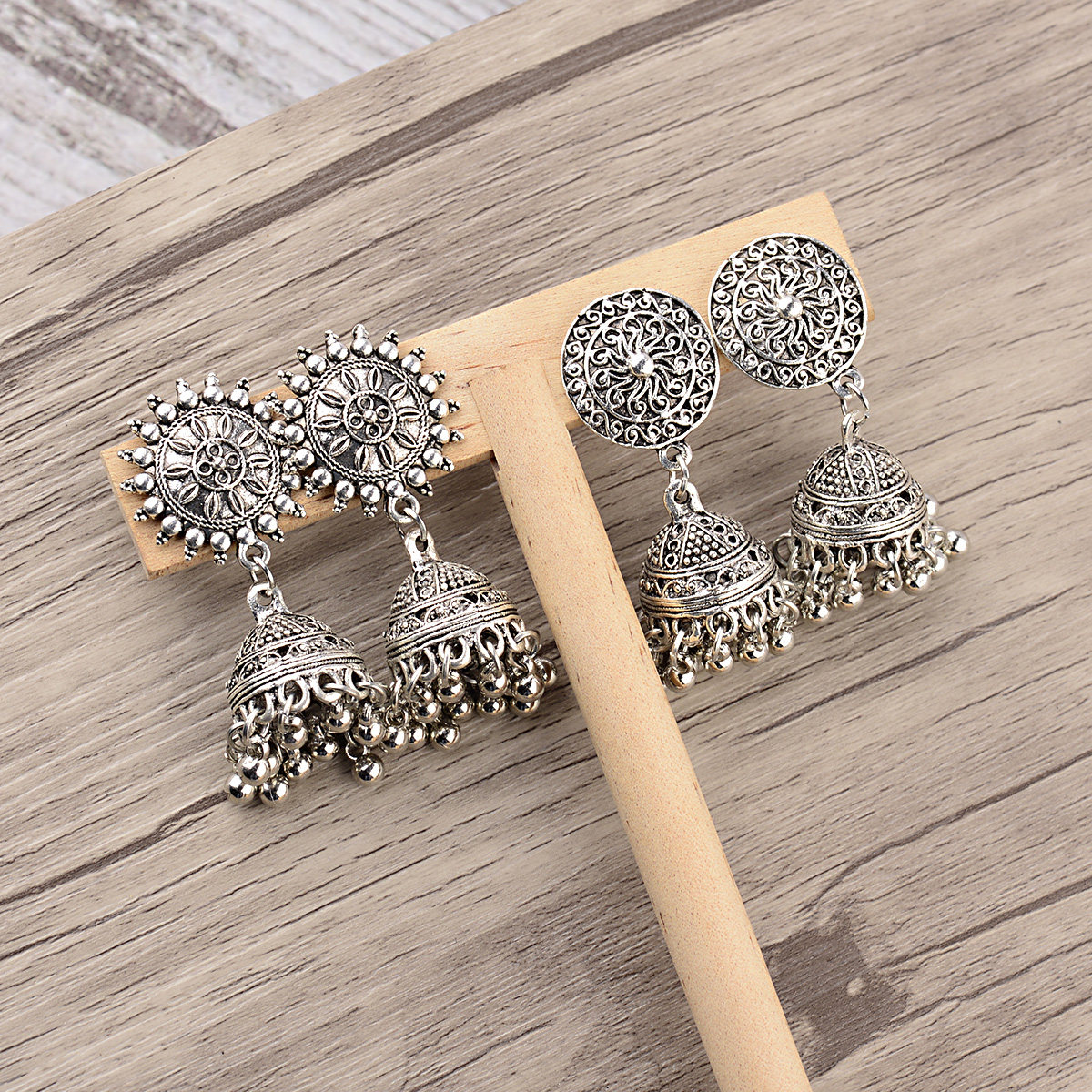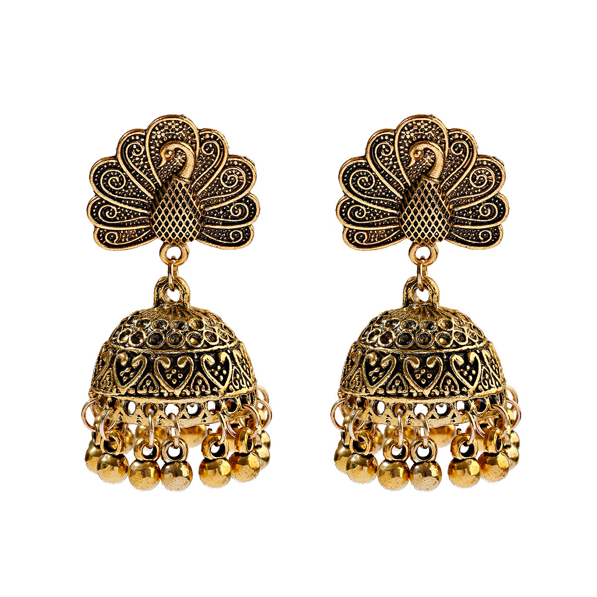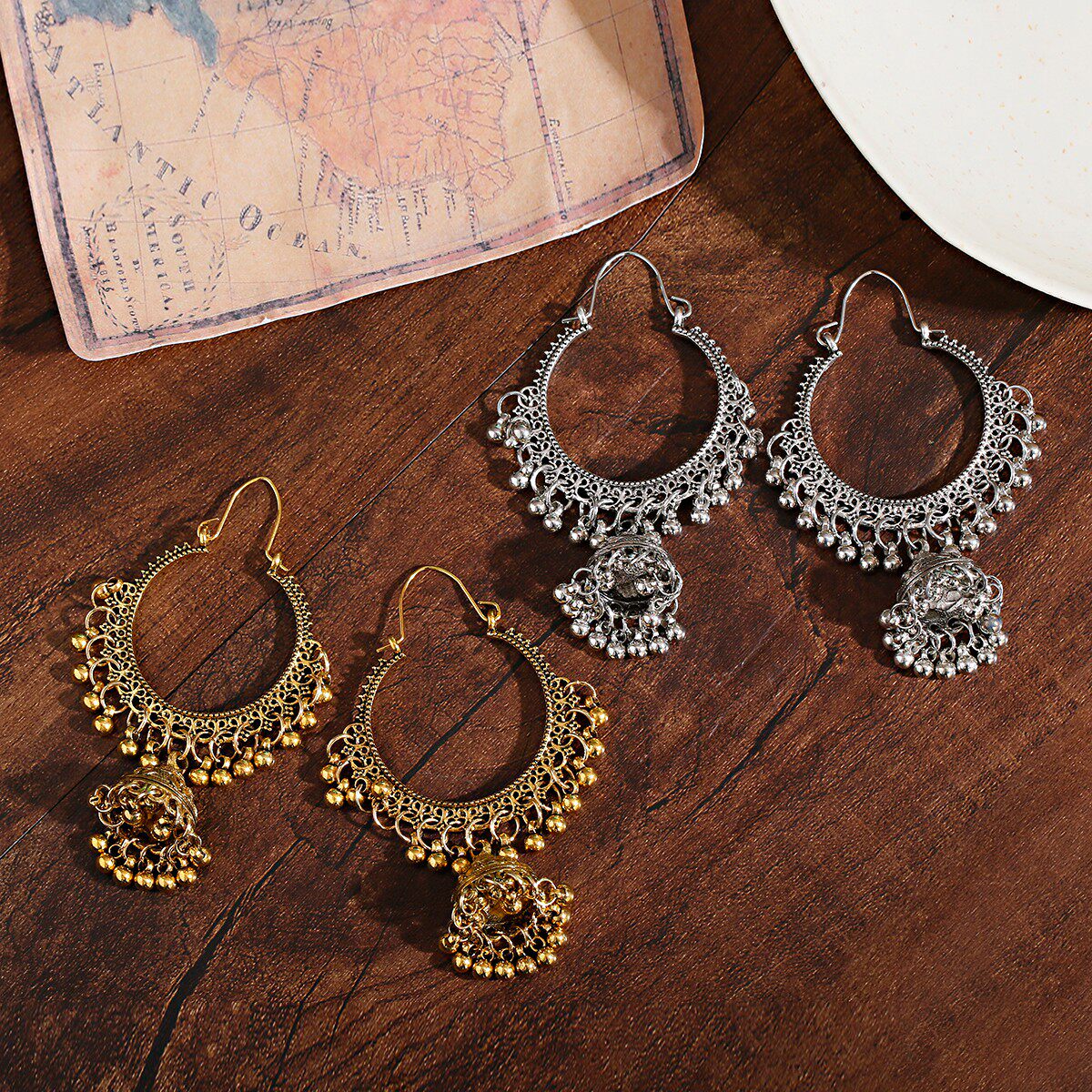 复古少数民族风耳环波西米亚镀金合金铃铛流苏气质尼泊尔饰品女