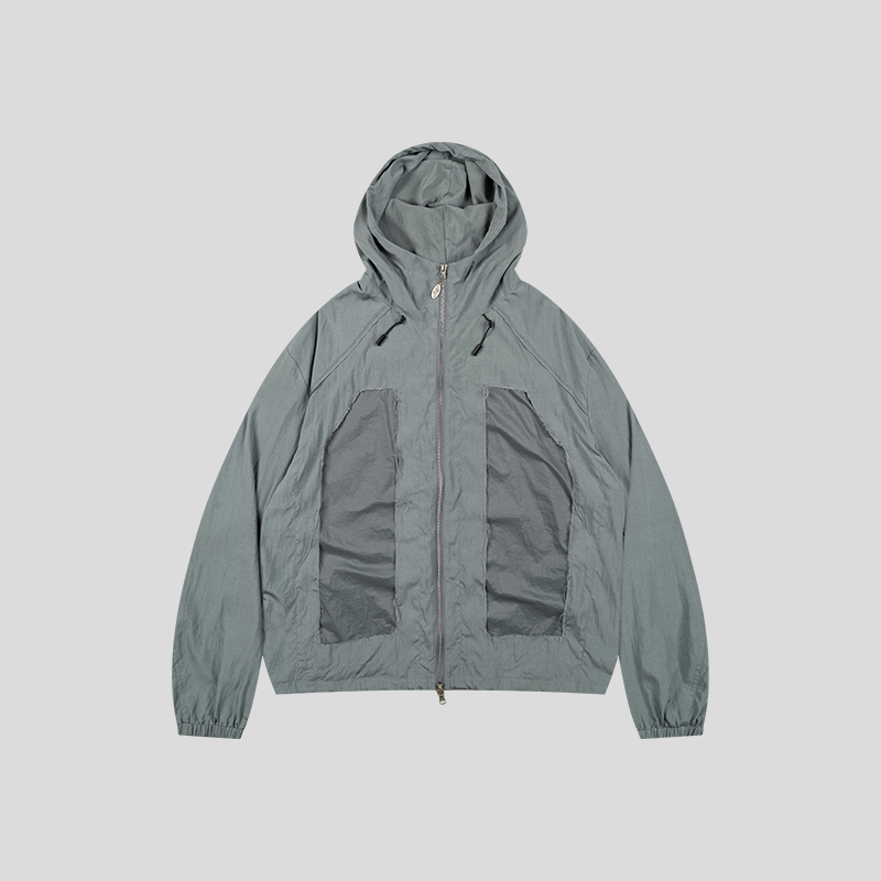 GOODBAI 拼接双层破坏毛边连帽拉链外套 916