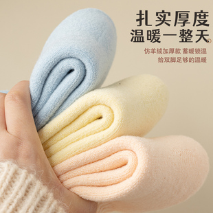 中筒袜加绒加厚保暖毛圈袜居家睡眠月子袜冬天潮 白色袜子女秋冬季由