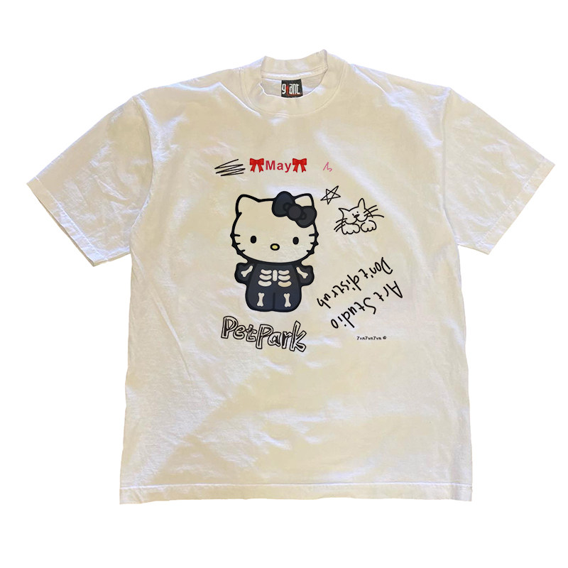 骷髅小猫卡通童趣宽松小众休闲短袖 T恤 重磅260克纯棉 90s90s90s由