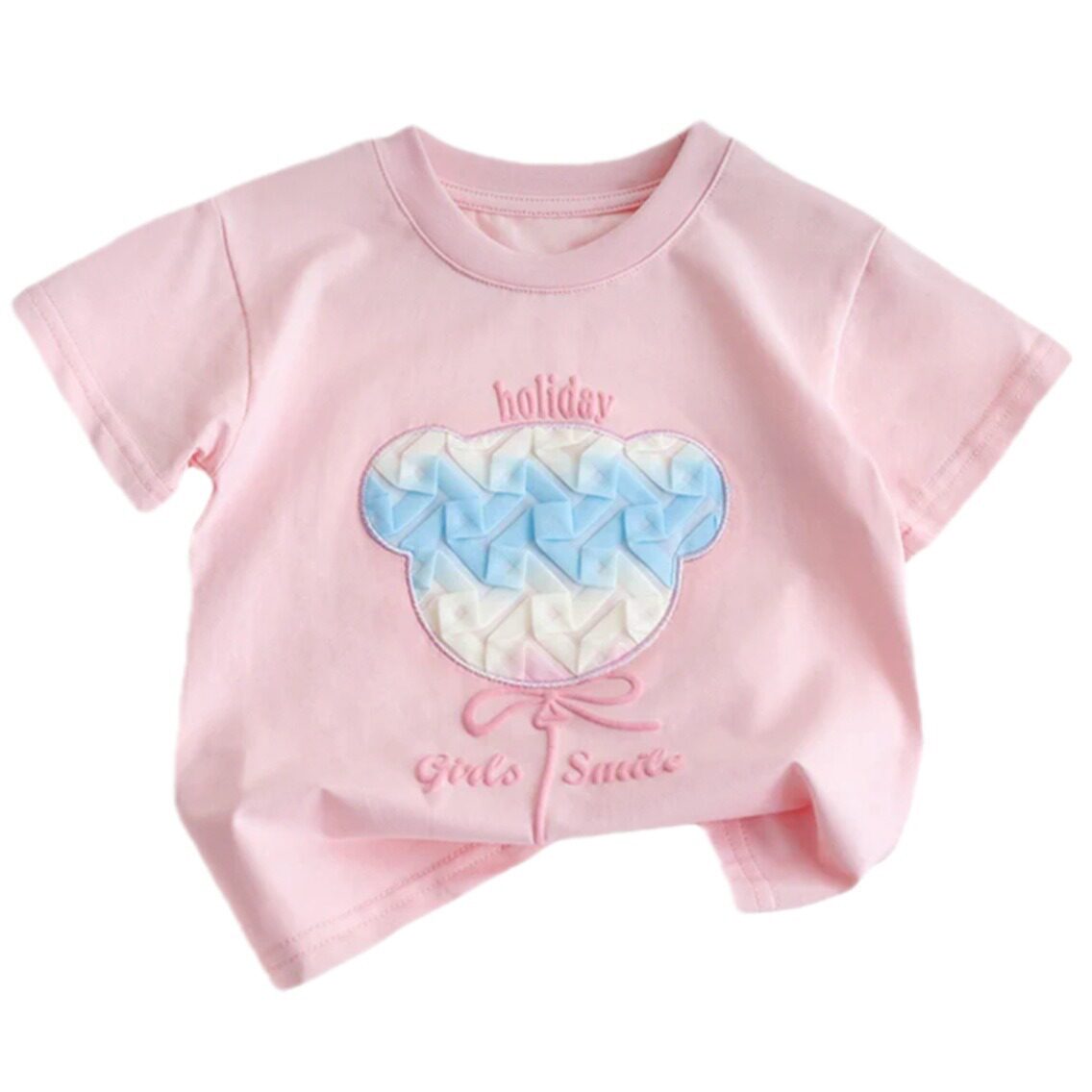 卡通立体小熊小女孩洋气甜美夏装 女童短袖 2025夏季 新款 T恤打底衫