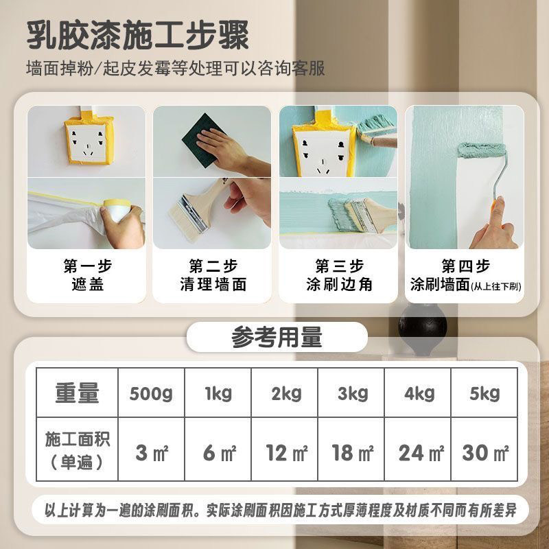 环保内墙乳胶漆室内家用白色自刷粉墙漆涂料彩色油漆墙面修复无味