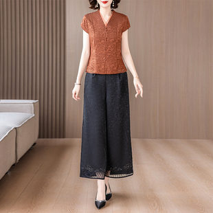 香云纱两件套中老年妈妈气质夏装 宽松上衣阔腿裤 套装 高端品牌时尚