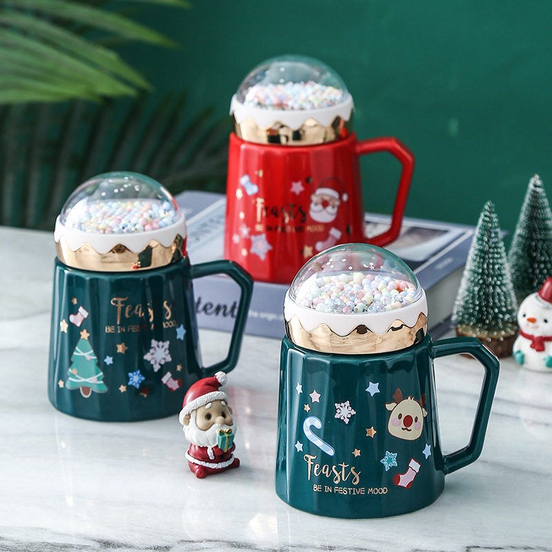 家用喝茶水杯男办公室咖啡杯高颜值 马克杯带盖勺陶瓷杯子女士新款