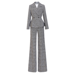 气质时尚 洋气格子减龄西装 套装 女2023年秋冬新款 两件套 高腰阔腿裤