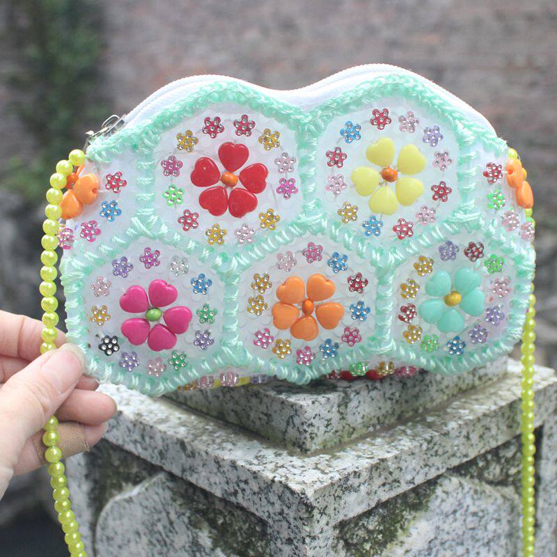 手工编织珍珠拉链手提斜挎单肩包包儿童小包珍珠包 女包 2017新款由
