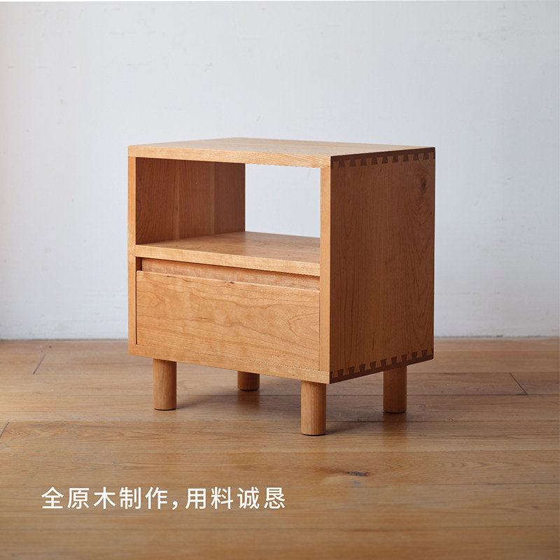 双层床头柜 小型实木樱桃木简约现代收纳床边柜子 夏克式 MUMO木墨由