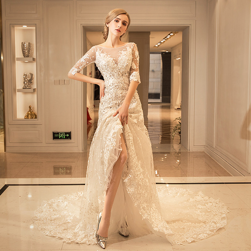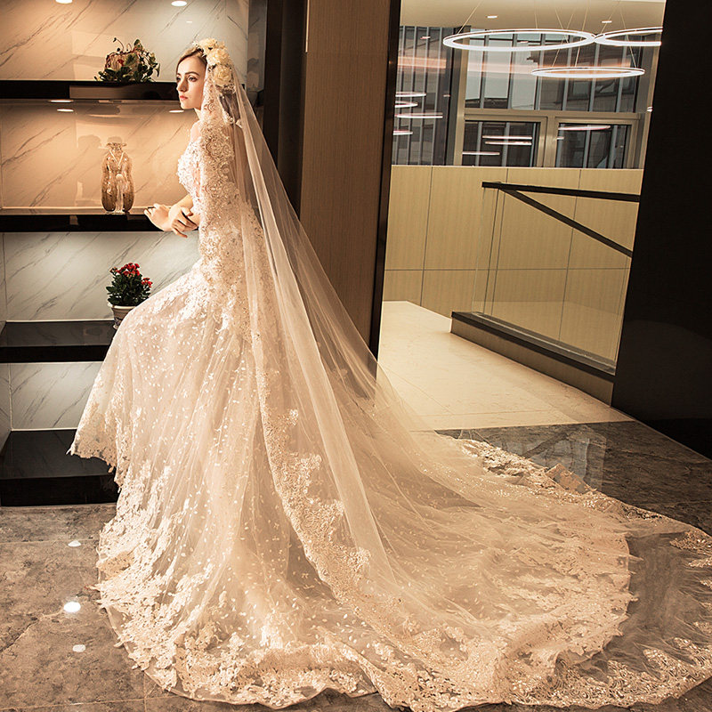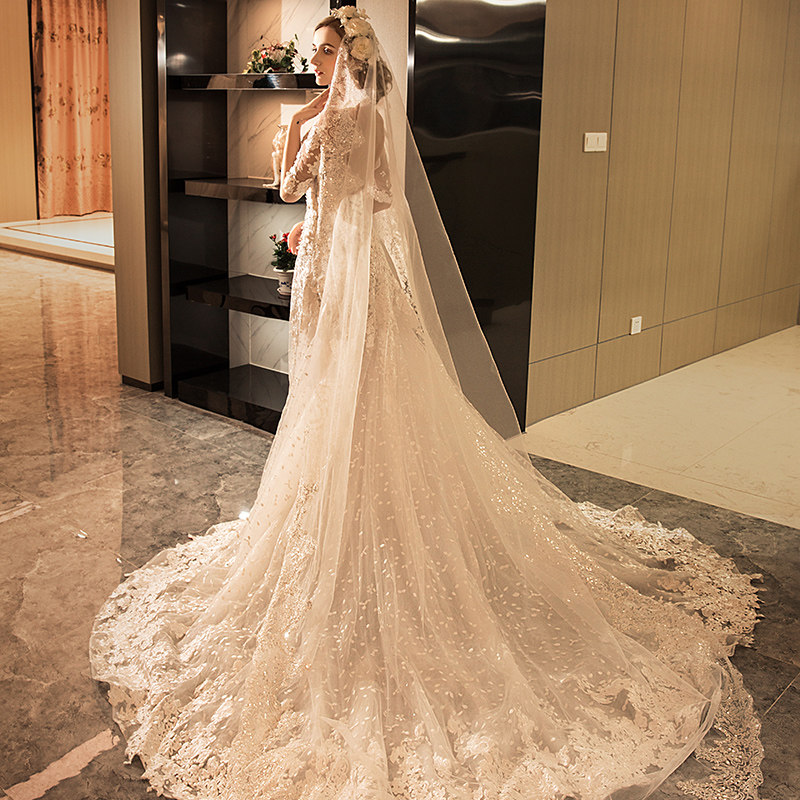 媛菲莎妮主婚纱2023新款 结婚新娘结婚长拖尾鱼尾显瘦公主梦幻 秋季