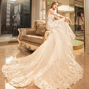 为您提供商品媛菲莎妮主婚纱2023新款 结婚新娘结婚长拖尾鱼尾显瘦公主梦幻 秋季的详细介绍,