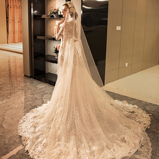 媛菲莎妮主婚纱2023新款 结婚新娘结婚长拖尾鱼尾显瘦公主梦幻 秋季由