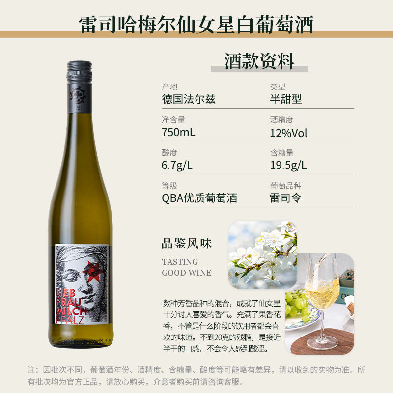欧洲专柜哈梅尔仙女星德国雷司令法尔兹半甜白葡萄酒 小Red书爆款由