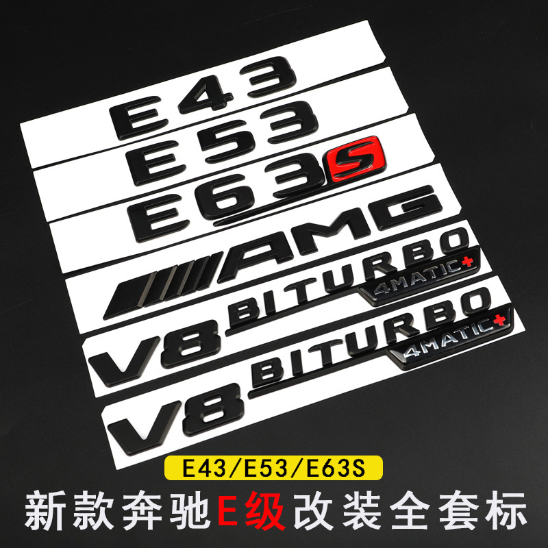 奔驰车标新E级C级改装 C43 E53 E63S车尾标字标贴AMG黑色车标 C63S