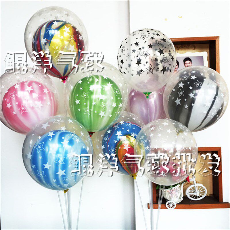 饰 发光双层气球透明彩云玛瑙满天星球中球彩灯气球地推礼品生日装由