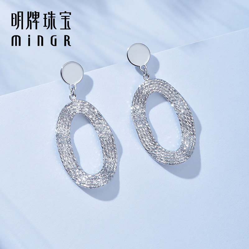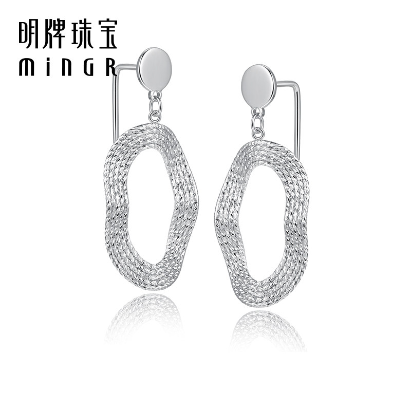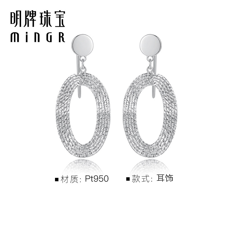 明牌珠宝铂金水漾流光耳饰 女耳圈BFH0089 PT950白金波光耳钉时尚由