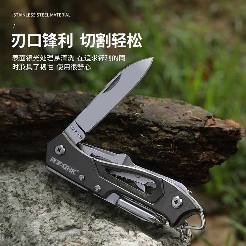 鸿丰户外多功能刀野外露营折叠剪刀开瓶多用途防身小刀组合工具刀由